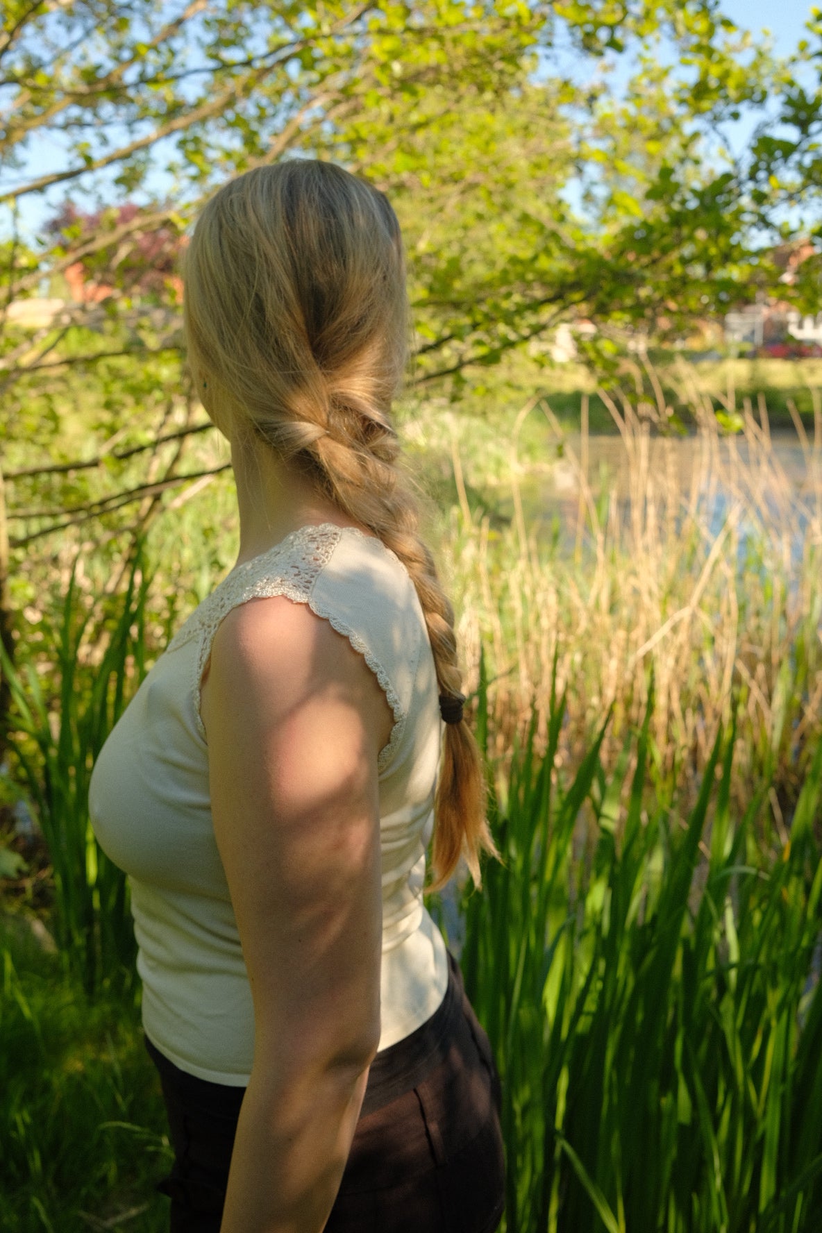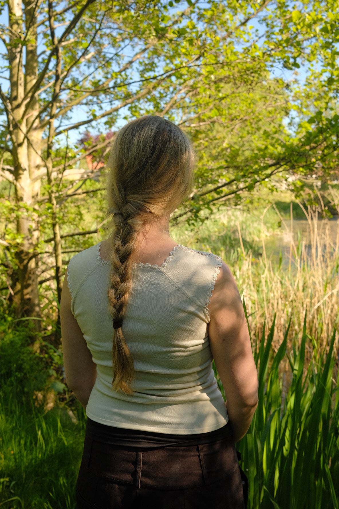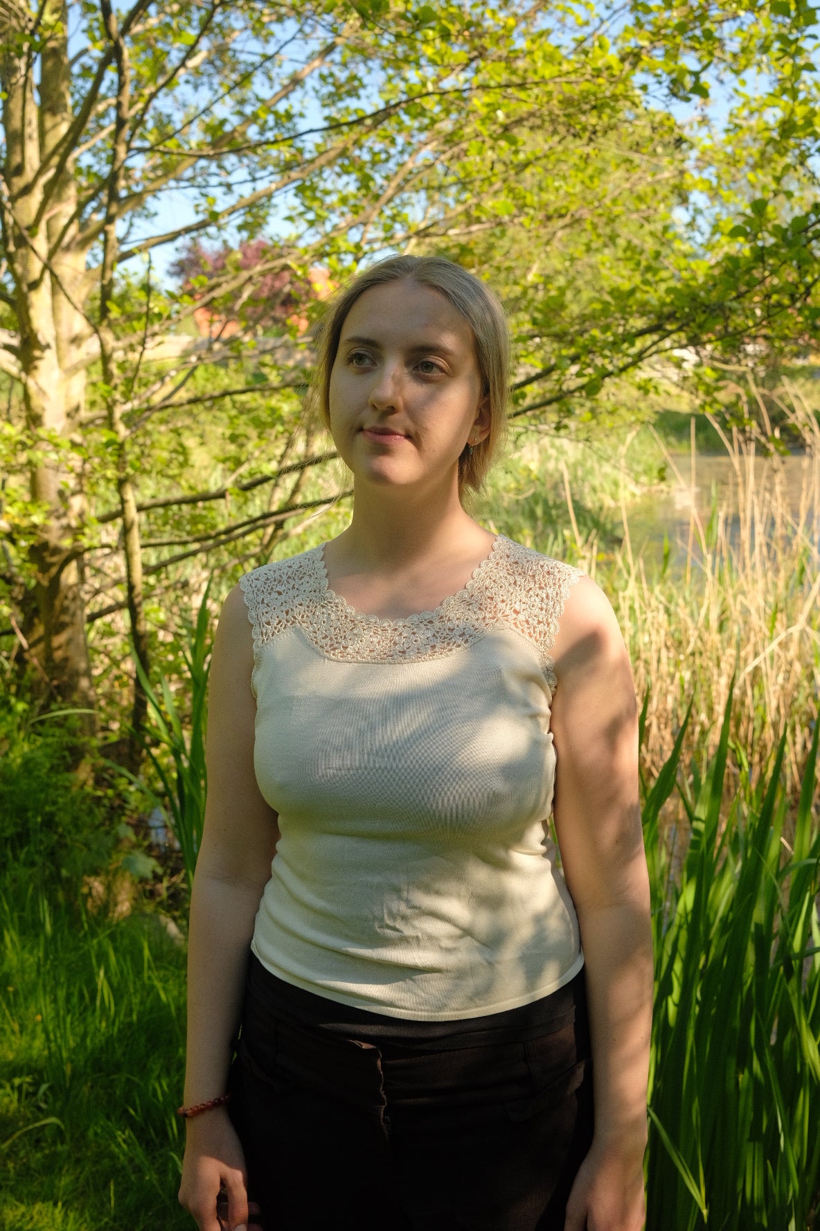 Hvid viskose-top med fin broderikant.