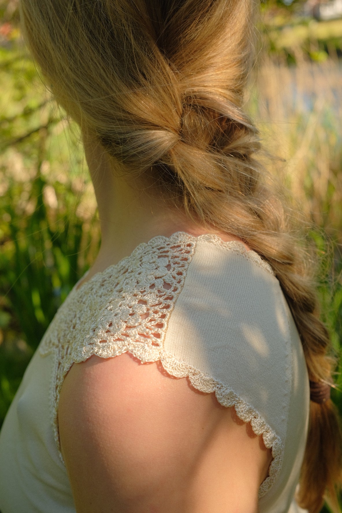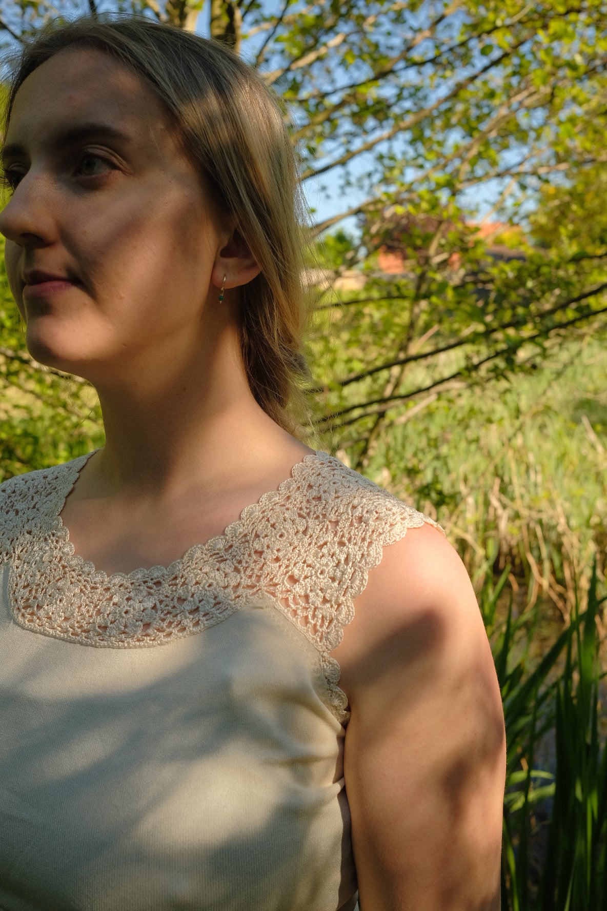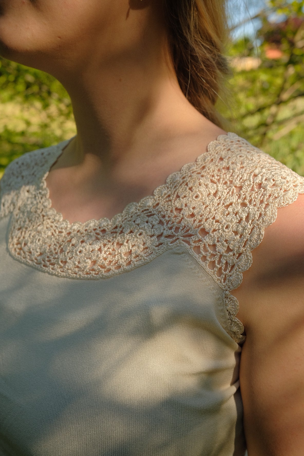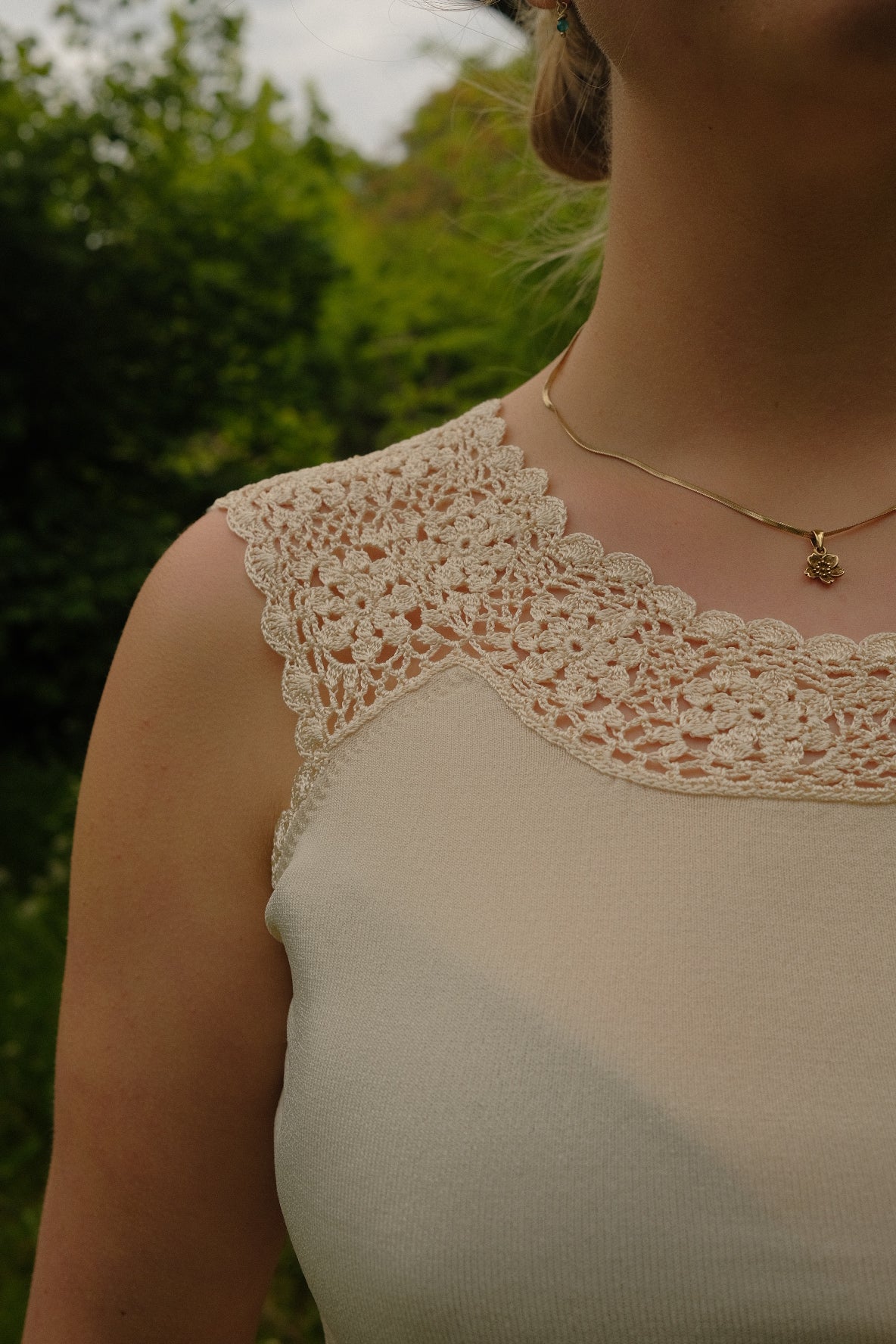 Hvid top med broderikant