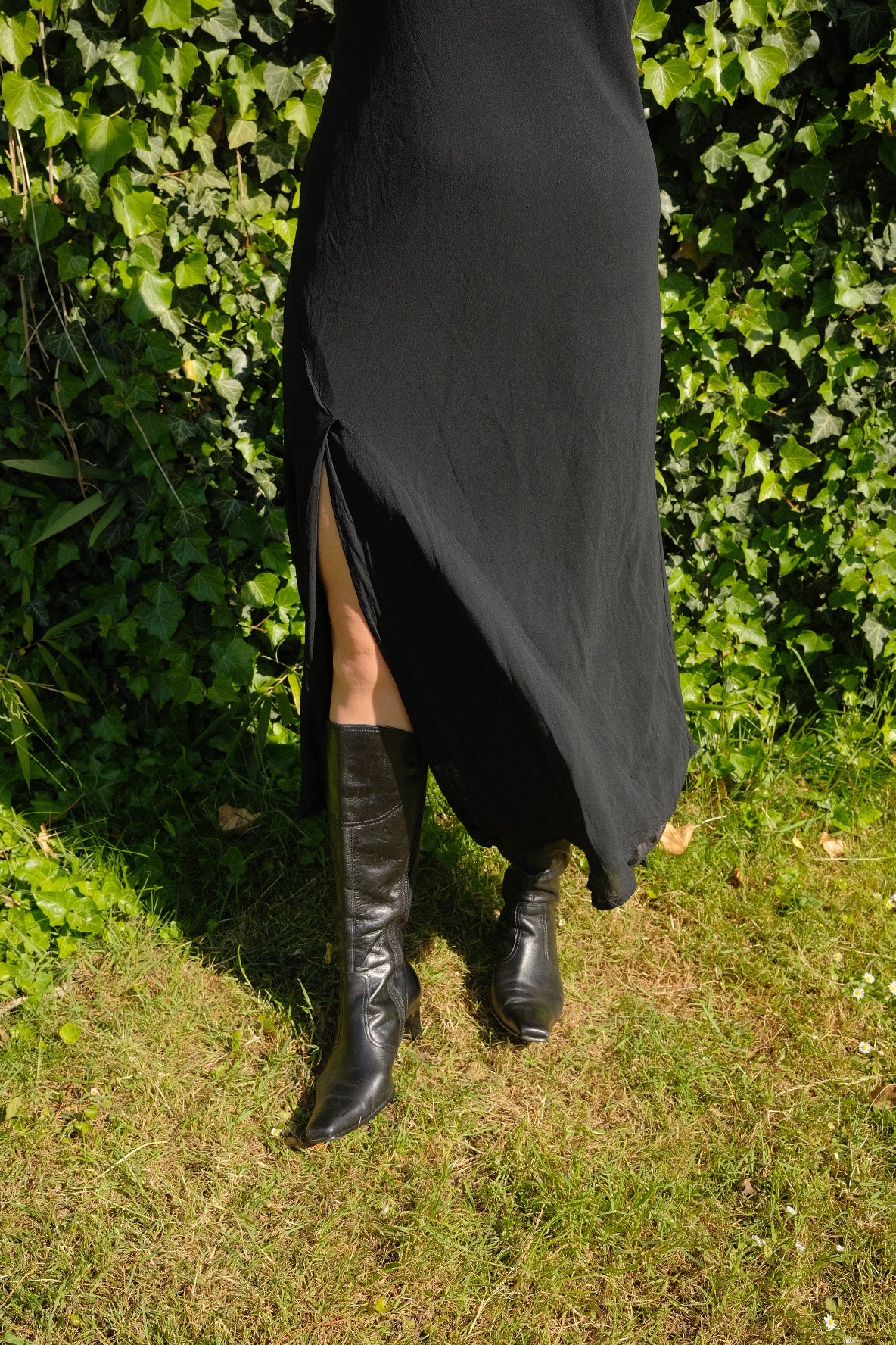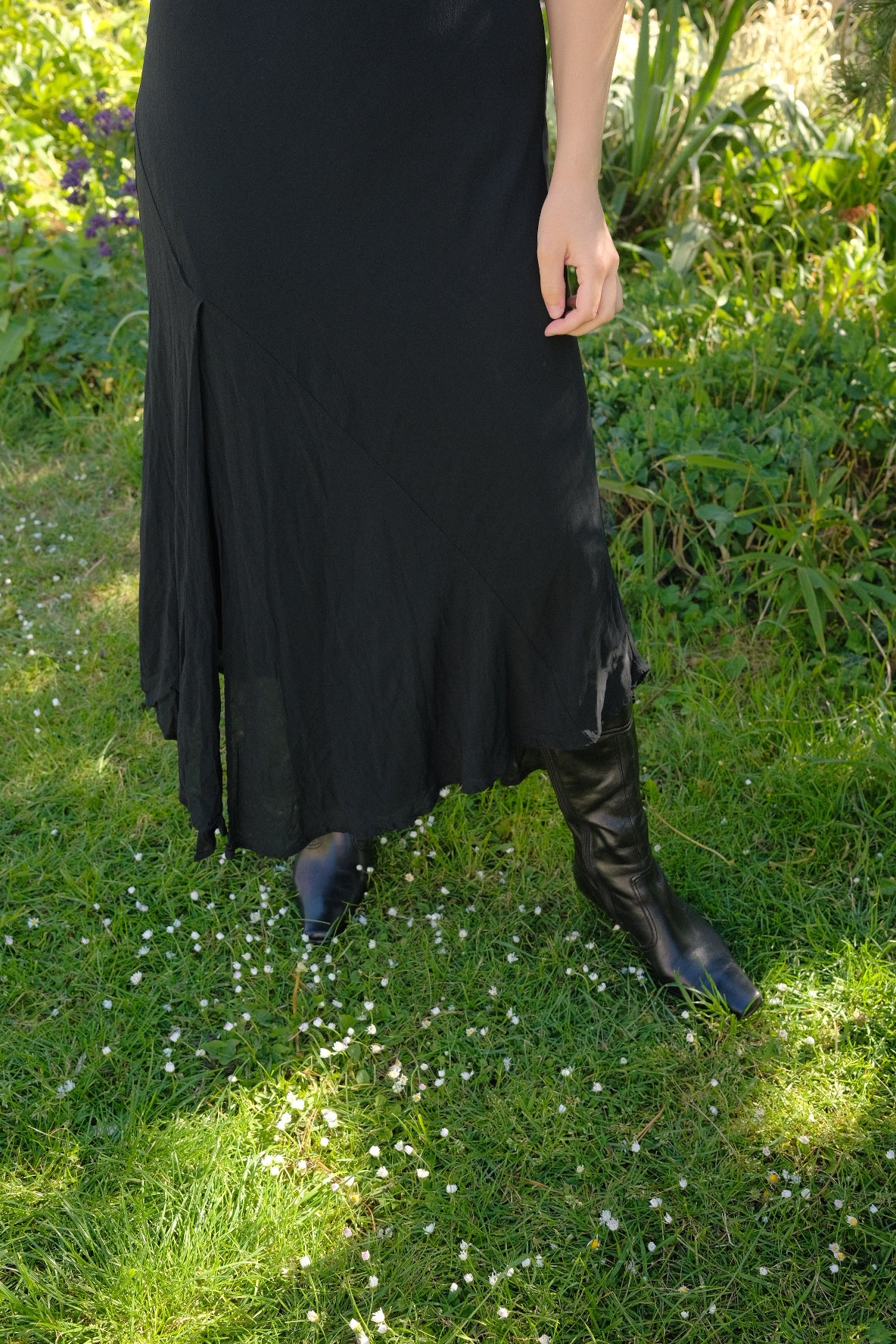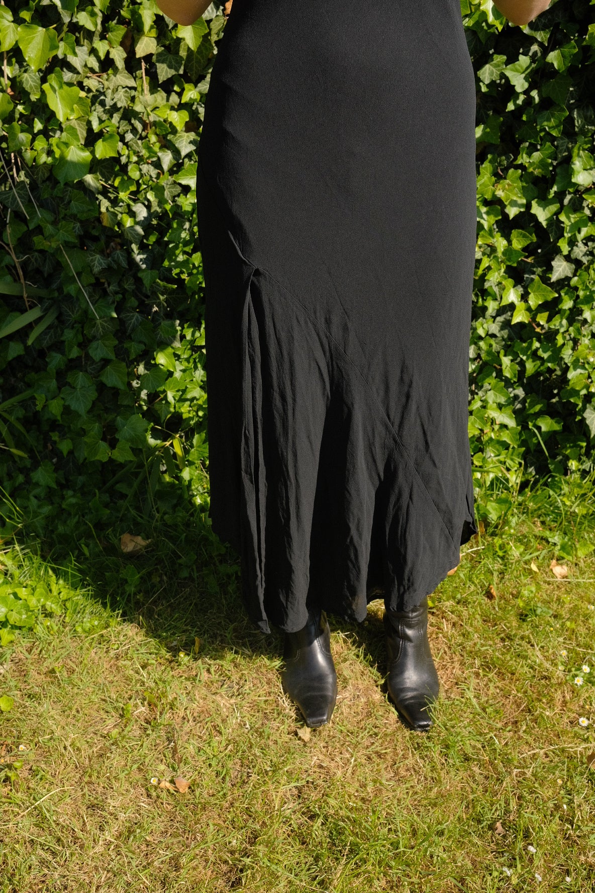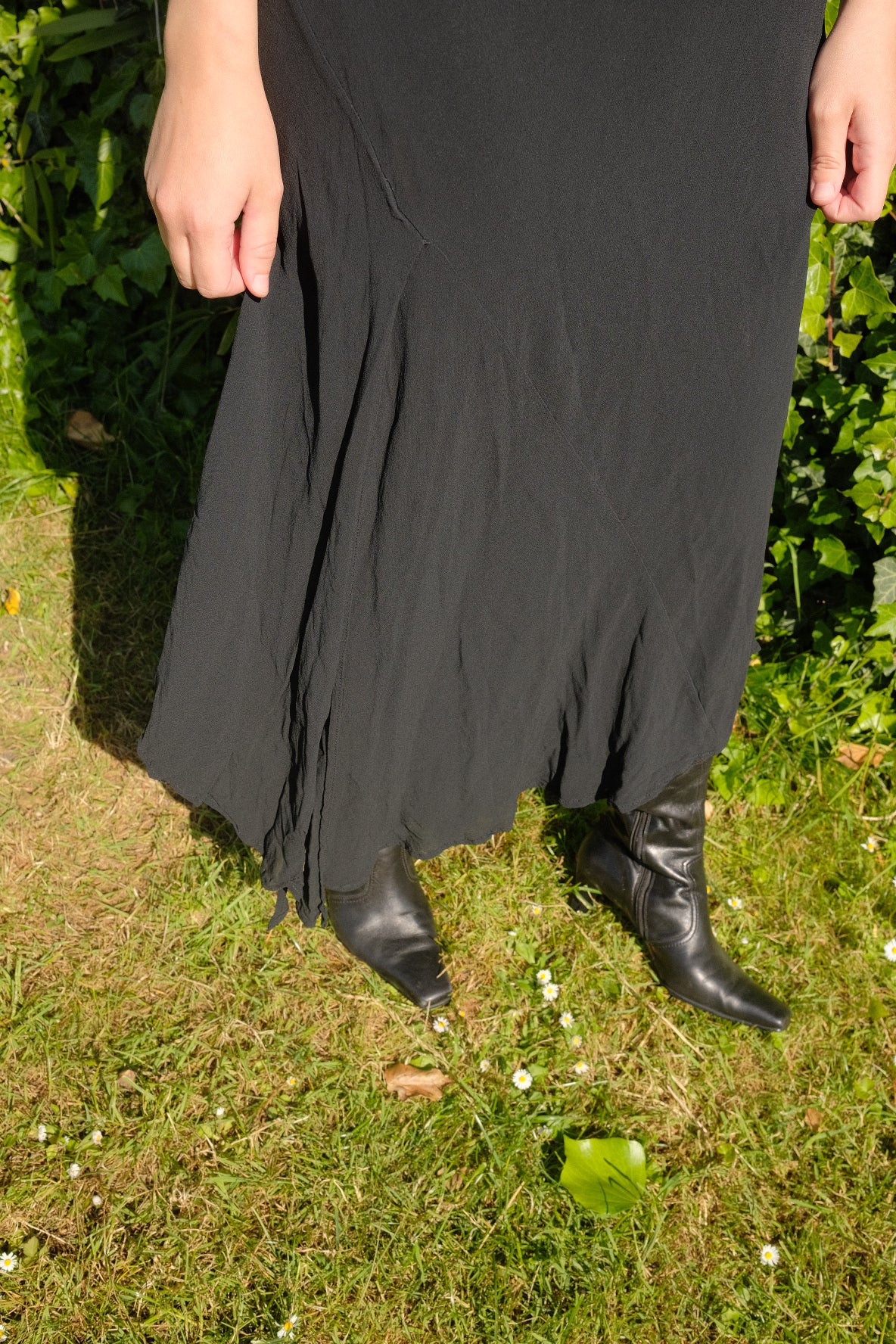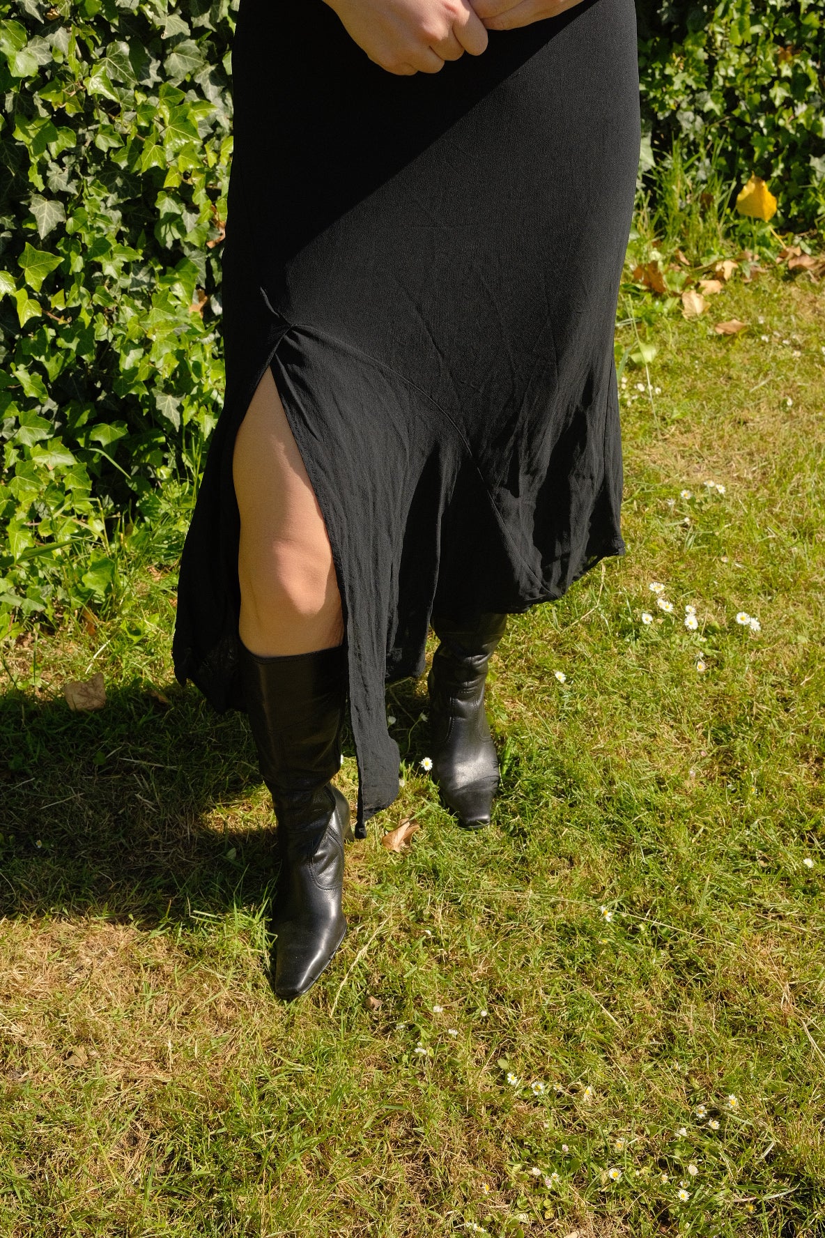 Kjolen passer bedst, hvis man er 160cm og under, da slidsen ellers går lidt for langt op hvis man er højere.